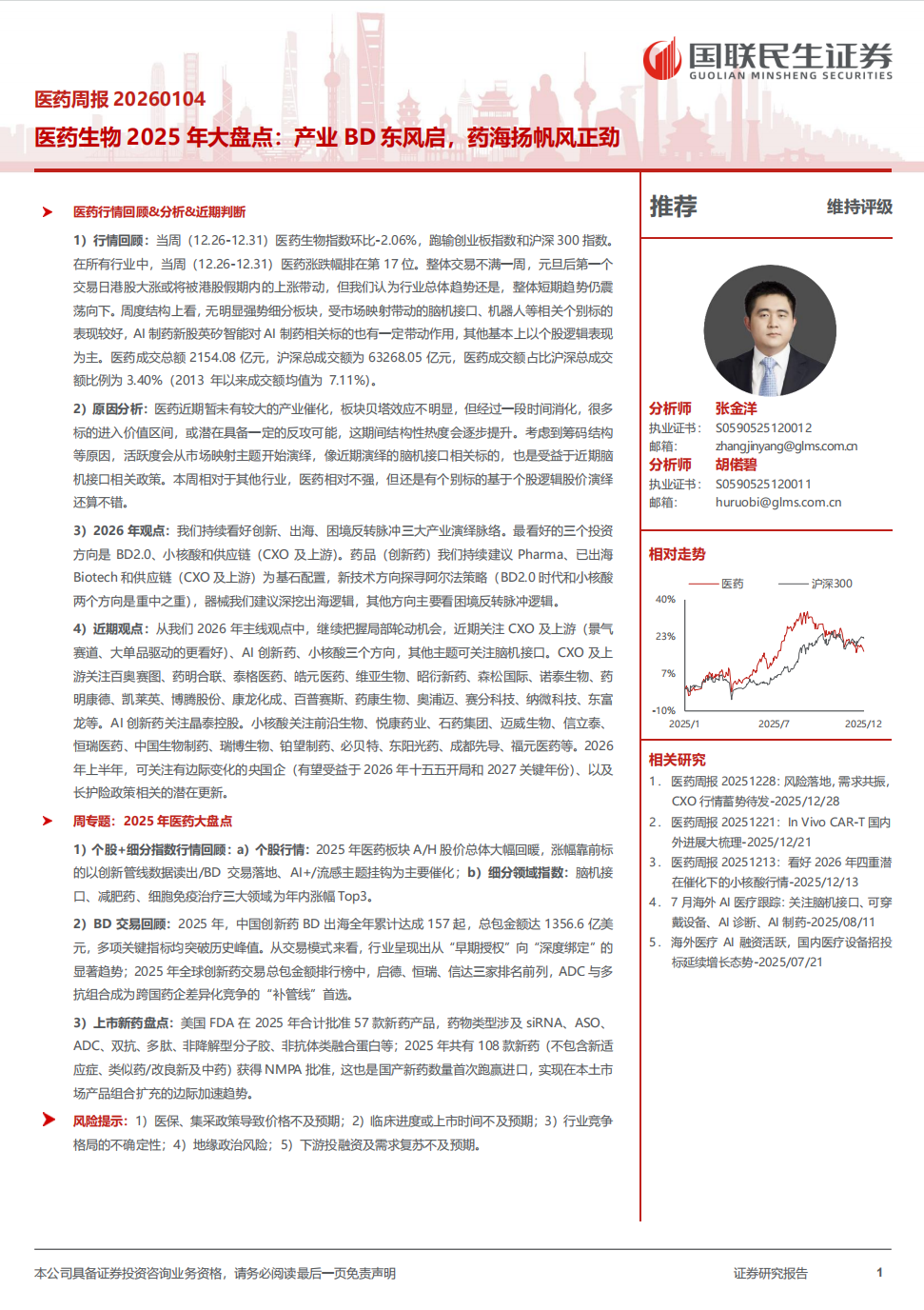 1)医保、集采政策导致价格不及预期。医保谈判、带量采购等政策陆续出台,可能导致相关药品、器械的价格持续下调从而加剧行业竞争的风险,导致相关企业利润有望受到影响。