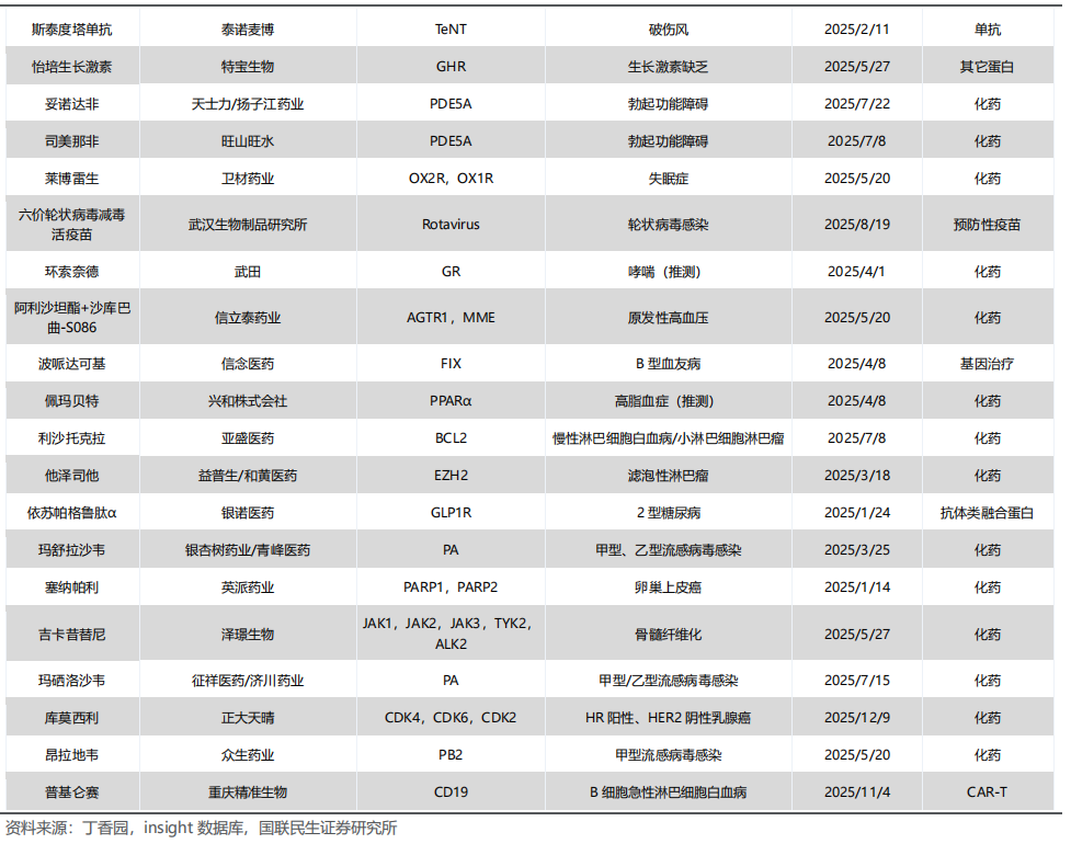 根据Insight数据库,2025年共有108款新药(不包含新适应症、类似药/改良新及中药)首次获得NMPA批准上市,其中国产新药有59款,进口新药49款(国产新药数量占比超过半,这也是近几年以来国产新药数量首次跑赢进口)。