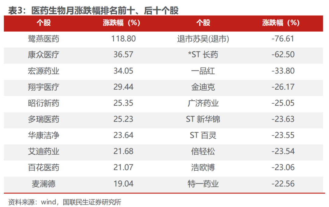 2.3 医药板块个股行情回顾