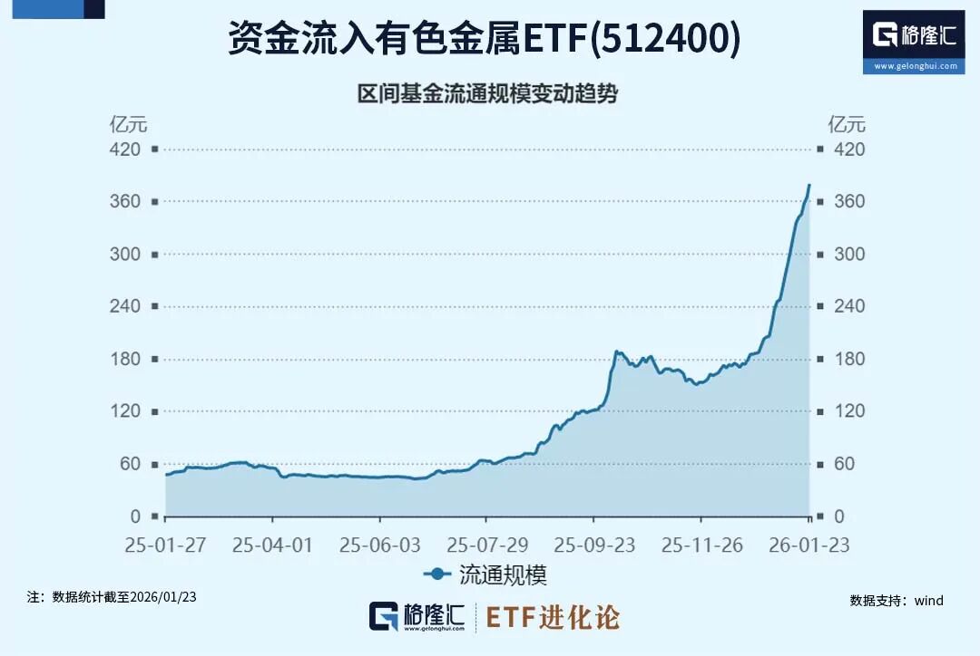 有色金属ETF(512400)在2025年全年上涨101.15%的基础上,2026年以来16个交易日上涨25.27%,吸足市场眼球。