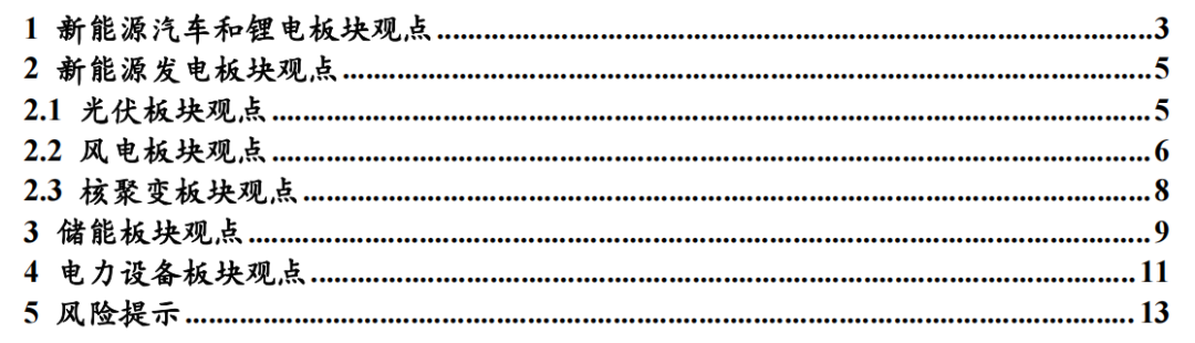 电动车消费复苏不及预期、海外政策风险等;光伏下游需求不及预期;上游原材料价格大幅波动;风电装机不及预期。