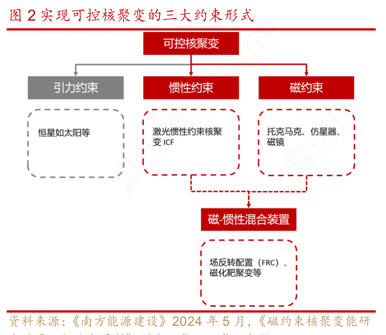 实现可控核聚变主要有三大约束形式:引力约束、惯性约束和磁约束。