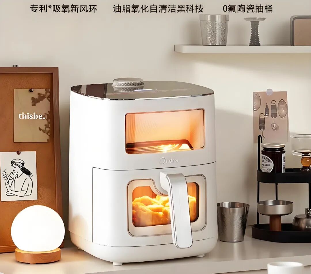 技术迭代彻底解决核心痛点,成为了回暖的基础,头部品牌通过持续研发投入,精准发力,有效攻克了传统产品的诸多难题。例如,九阳推出了远红外加热搭配微蒸汽锁水技术,既能让食材内外均匀受热,又能有效保留食材水分,避免食材变得干柴;苏泊尔采用龙卷风循环加热技术,借助涡流结构形成立体环绕气流,无需用户手动翻面,即可确保食材受热均匀;美的将传统特氟龙涂层升级为0氟陶瓷材质,在解决清洗难题的同时,进一步提升了产品的健康安全性能。