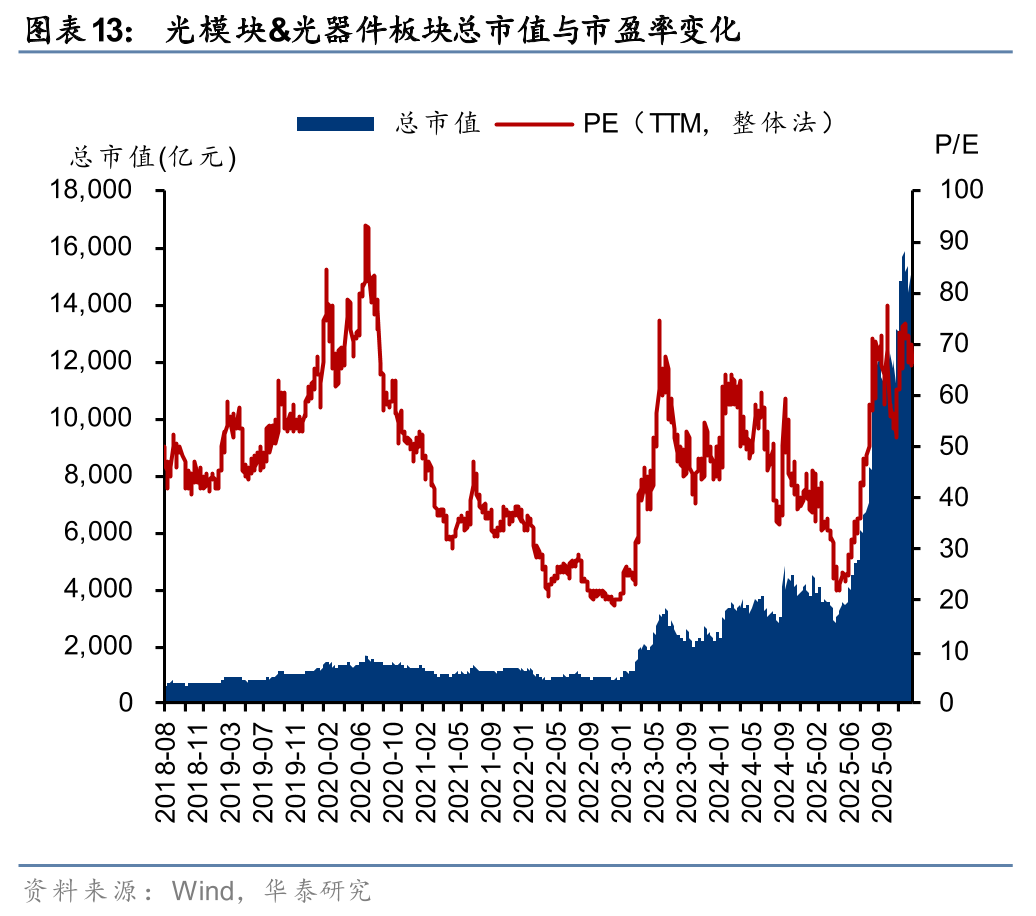 根据我们的统计,4Q25公募基金前十大重仓中通信板块A股持仓占比8.75%,环比上升0.91pct;4Q25板块超配比例为5.25%,较3Q25上升1.89pct。4Q25 公募基金加仓液冷、光芯片、数据中心、商业航天等板块,减仓光纤光缆、通信设备等板块。估值层面,2026年1月23日通信(申万)市盈率TTM为50.01x,系2011年初至今83.10%历史分位数。