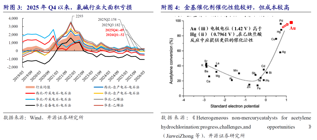 《关于汞的水俣公约》(以下简称《公约》)的目标是保护人类健康和环境免受人为排放和释放汞和汞化合物的影响。自2001年2月环境署理事会第21届会议以来,汞问题一直列入环境署理事会议程,每隔两年开会一次,电石法聚氯乙烯生产用汞工艺淘汰时限已成为近几次《公约》缔约方大会谈判的核心焦点。在电石法生产PVC的过程中,乙炔与氯化氢的反应需以氯化汞作为催化剂。然而在催化反应过程中,氯化汞易发生汞流失,不仅造成催化剂活性下降,还可能对环境和人体健康带来潜在危害。而《公约》已经明确2032年将禁止全球原生汞矿的开采,届时将无法再利用氯化汞作为催化剂生产PVC。目前有两种方式推动PVC无汞化:①采用金基催化剂。使用金基催化剂一方面需要改造生产产线,另一方面需要使用价格更高的黄金作为催化剂,我们预计产线改造 催化剂费用将增加PVC单吨成本100元左右。同时金基催化剂第一次加注的量较大,加上成本较高,规模较小的PVC生产企业或无力承担。②采用乙烯法生产工艺。根据我们统计,烧碱/电石法PVC配套项目单吨投资额平均为3,328元/吨,而烧碱/乙烯法PVC配套项目单吨投资额约为5,973元/吨,乙烯法PVC生产工艺所需要的投资成本更高。无论哪种方式,都将增加电石法PVC企业的成本,其中采用金基催化剂路线为较优方式。因此我们认为,电石法PVC行业触媒无汞化已成趋势,规模较小、盈利能力较弱的PVC企业或将退出。