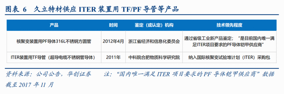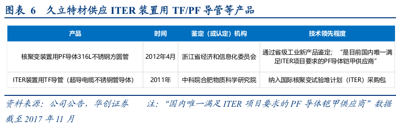 1)具备ITER供货能力。公司专注特殊管材37年,具备ITER装置用TF/PF导管的供货能力。