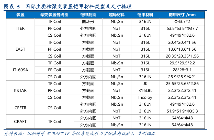 目前国际主要核聚变装置的超导磁体铠甲材料为316L或316LN不锈钢。具体来看: