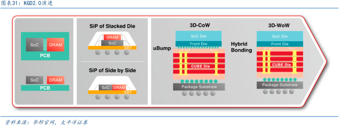 端侧AI催生存储新需求。随着边缘计算平台AI应用需求大幅增长,对内存芯片和模组的带宽、能耗、尺寸、散热等方面提出更高的诉求。华邦推出CUBE(Customized Ultra-Bandwidth Elements)技术,IO速度于1K I/O可高达2Gbps,提供从16GB/s至256GB/s的总带宽,通过增加I/O数量、提高数据速度、支持TSV(可选)、提供散热优秀的3D架构,解决传统内存IC和模组解决方案的痛点。CUBE将SoC置上(无TSV)堆栈在CUBE(有TSV),有机会最小化SoC芯片尺寸,从而省下TSV面积损失,为边缘AI设备带来更明显的成本优势。