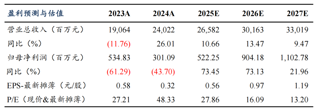 盈利预测与投资评级:由于铝价上涨且铝箔加工费仍有上涨空间,我们预计25-27年归母净利润5.2/9/11亿(原预测值为4.5/6/7.5亿),同比增73%/73%/22%,对应PE为28x/16x/13x,给予26年25x估值,对应目标价24元,维持“买入”评级。