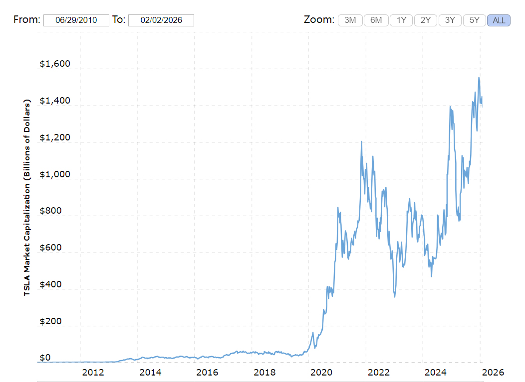 特斯拉市值变化