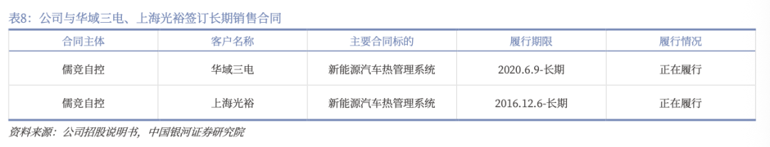 公司客户结构优质,合作长期稳定。公司自2016年成立儒竞电控以来,持续深耕新能源汽车热管理系统领域,公司与华域三电、上海光裕等Tier1压缩机供应商和科博乐等PTC供应商保持长期稳定的合作关系,华域三电的下游整机客户包括上汽大众、特斯拉、赛力斯、沃尔沃、长城汽车、吉利汽车等国内外知名车企。