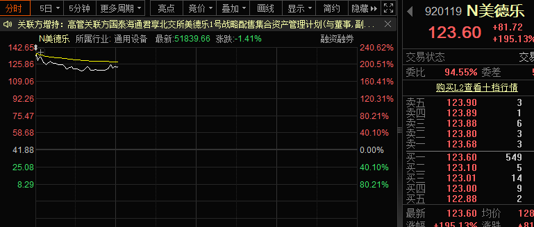 今日上市新股N美德乐开盘涨222.35%。