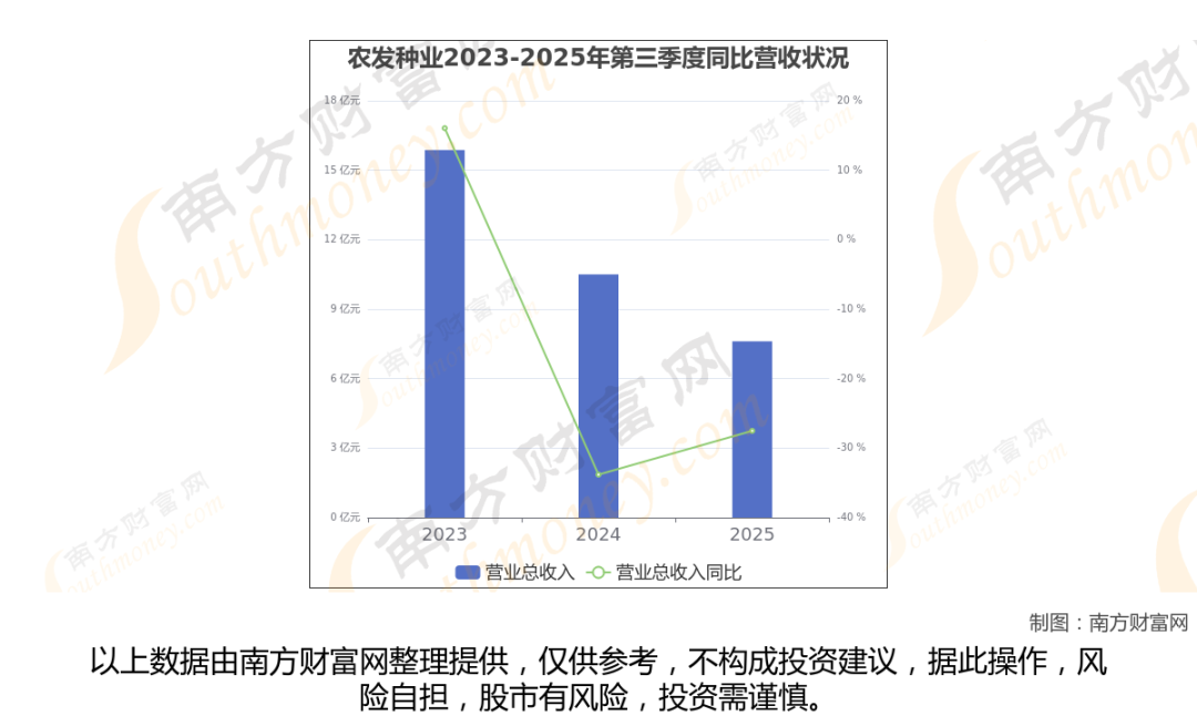 农发种业披露了2025年第三季度财报。报告显示(如上图),农发种业2025年第三季度实现营收7.61亿元,同比-27.52%。