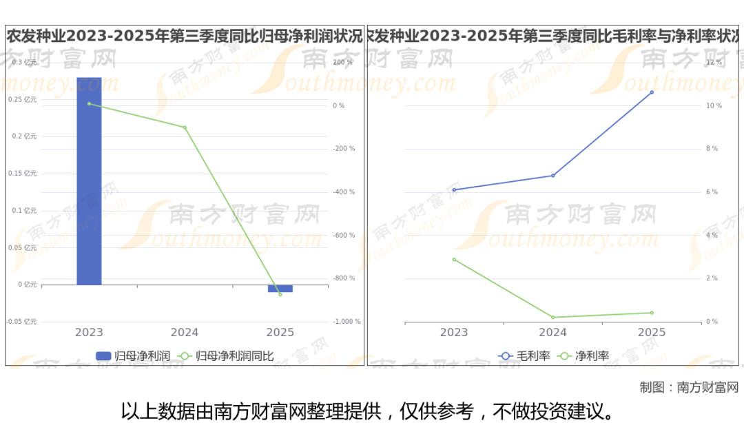 公司2025年第三季度季报显示,农发种业实现净利润-105.57万,同比增长-873.54%;毛利润为8088.85万,毛利率10.63%。