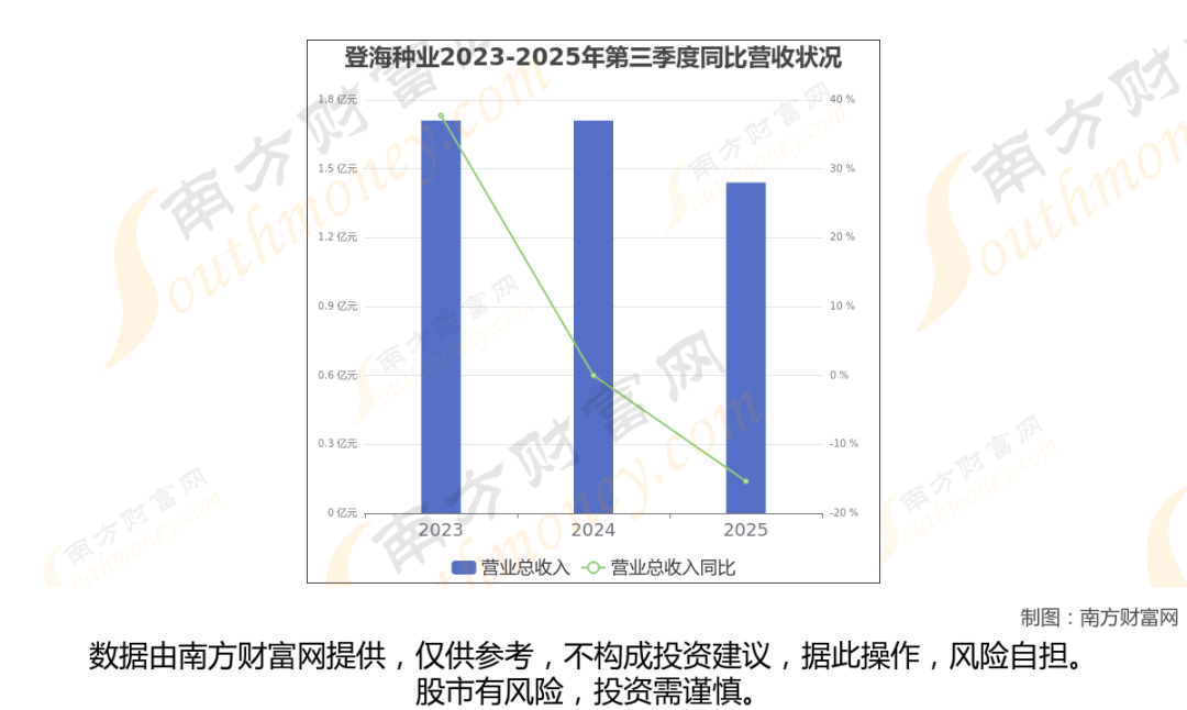 (如上图)登海种业(002041)披露2025年第三季度报告,报告期实现营收1.44亿元,同比-15.36%。