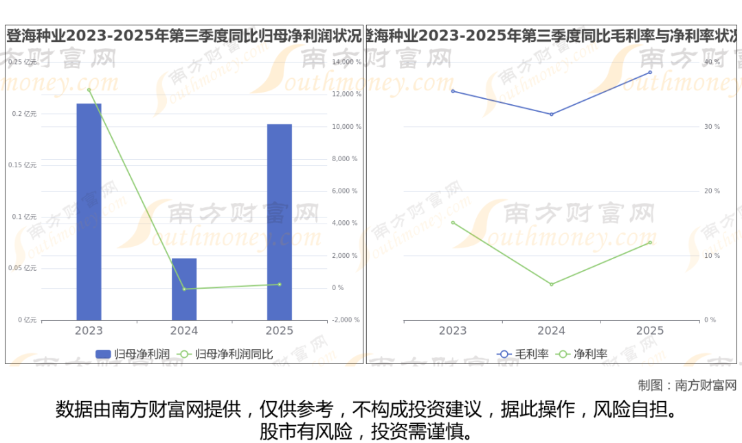2025年第三季度季报显示,登海种业公司实现净利润1888.07万,同比增长222.86%;毛利润为5550.37万,毛利率38.45%。