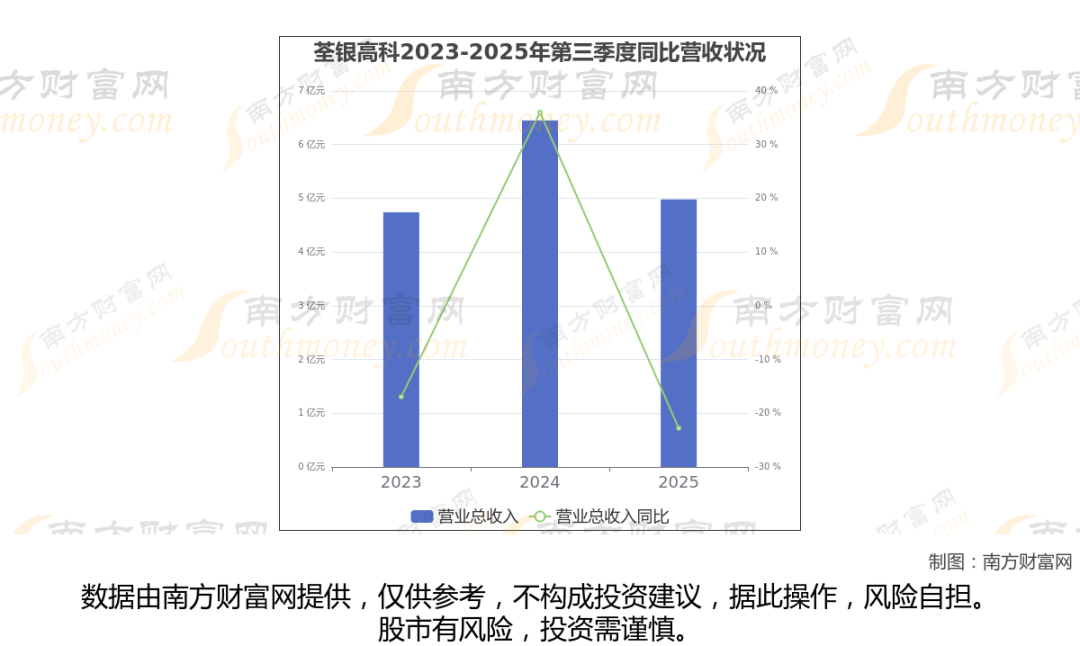 荃银高科2025年第三季度报告显示(如上图),公司实现主营业务收入4.98亿元,较去年同期增长-22.78%。