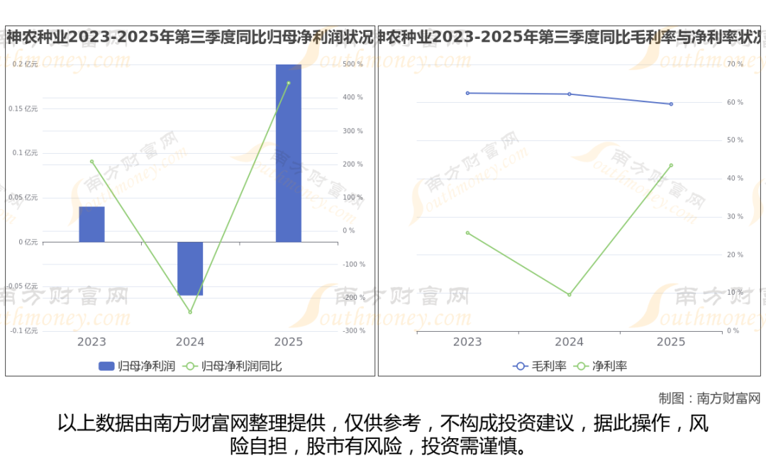 神农种业2025年第三季度季报显示,公司实现净利润2001.45万,同比增长444.39%;毛利润为4259.16万,毛利率59.58%。