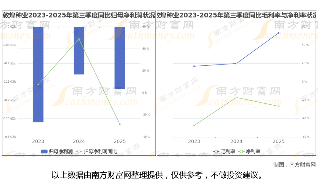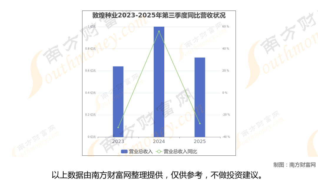 2025年第三季度季报显示,敦煌种业公司实现净利润-1722.93万,同比上年增长率为-28.45%,毛利率53.13%。