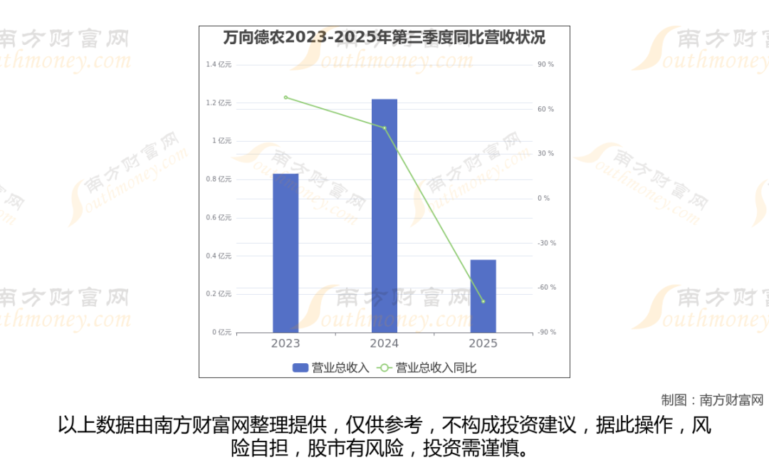 在2025年第三季度,万向德农的业绩表现(如上图),主营业务收入达到3771.64万元,实现了-69.11%的同比增长率。