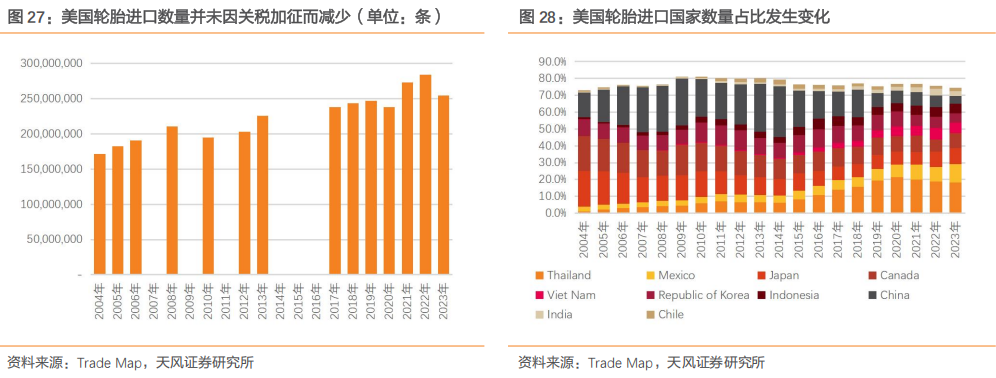 2.2.5. 美国关税带来了贸易流向变化,美国轮胎进口缺口仍在