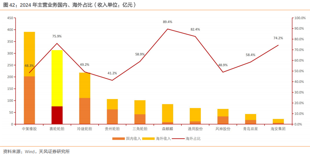 4.1.1. 海外收入占比较高,海外收入总量大的头部轮胎公司