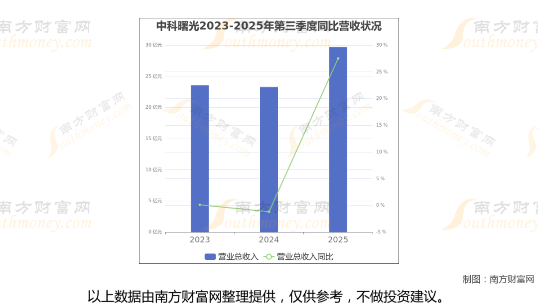于2025年第三季度,中科曙光披露了其业绩表现(如上图),其中主营业务收入29.7亿元,相较于去年同期27.51%。