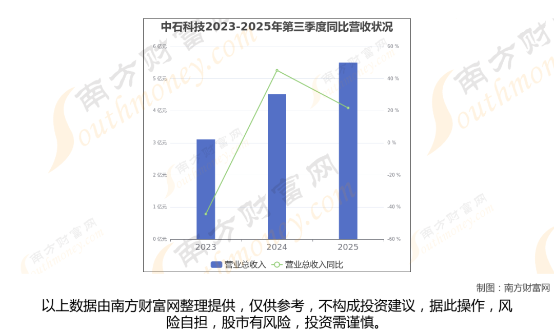 中石科技2025年第三季度报告显示(如上图),公司实现主营业务收入5.5亿元,较去年同期增长21.79%。