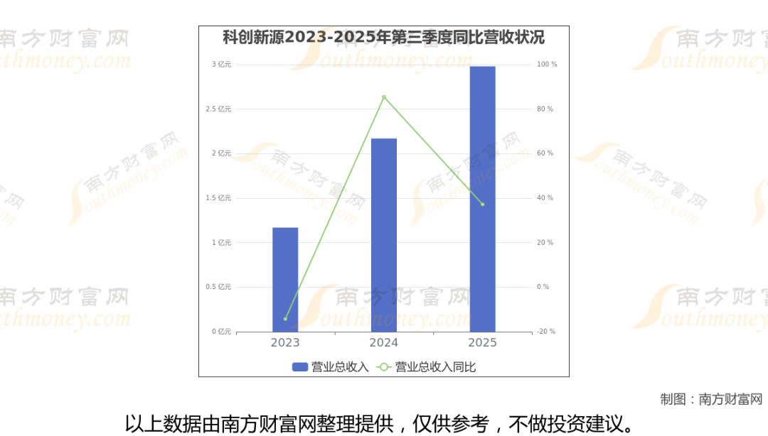 在2025年第三季度,科创新源的业绩表现(如上图),主营业务收入达到2.98亿元,实现了37.21%的同比增长率。