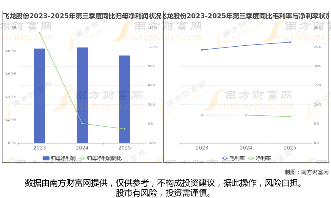 飞龙股份2025年第三季度季报显示,公司实现净利润7630.16万,同比增长-7.9%;毛利润为2.83亿,毛利率26.28%。