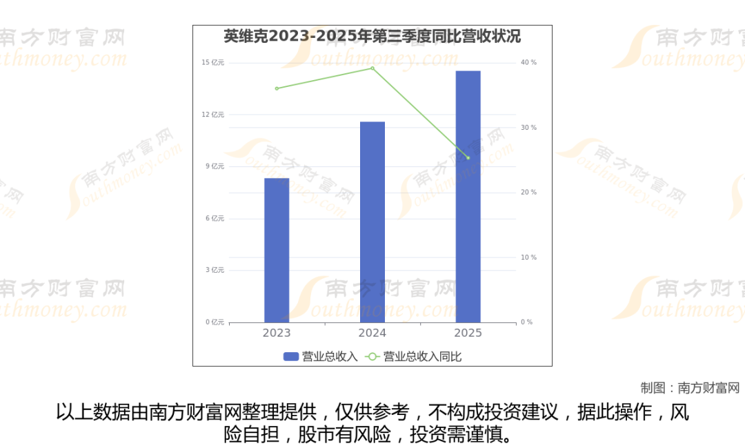 (如上图)英维克(002837)披露2025年第三季度报告,报告期实现营收14.53亿元,同比25.34%。