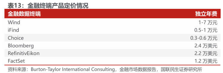价格锚点(上限): 参考Wind金融终端年费约1-7万元,Bloomberg约2.4万美元 。