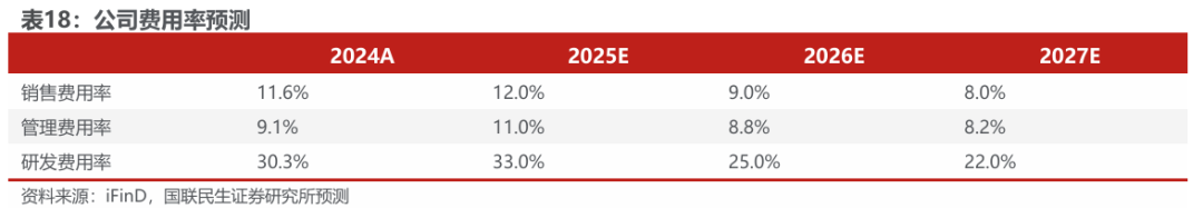 2)管理费用率:2025年在业务规模扩张背景下人员配置、组织管理及信息化建设等管理投入增加;随着内部管理体系逐步成熟、费用管控能力提升,我们预计2025-2027年公司管理费用率为11.0%/8.8%/8.2%;