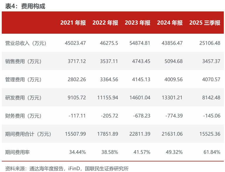 公司成本费用结构呈现高研发投入特点: