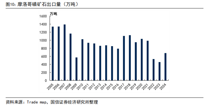 摩洛哥为全球磷矿储量龙头,多重瓶颈形成长期供给约束。摩洛哥虽拥有全球近70%的磷矿石储量,但磷矿开发节奏缓慢、出口量无大幅增加,核心受战略选择、资源加工约束、国内经济与社会压力、环境与资源等瓶颈因素制约。从战略层面,摩洛哥通过国有公司OCP主动控制初级磷矿石产量,优先推动磷矿石加工为高附加值磷肥、工业级磷酸盐后出口,而非追求原矿出口规模;资源加工层面,磷矿后续加工需大量淡水,而摩洛哥是全球最缺水国家之一,且传统开采设备(破碎机、浮选系统等)运营成本高,制约产能快速释放;国内经济层面,摩洛哥面临失业率高、政局压力大的问题,需优先通过高利润磷化工产业维持国内经济稳定,缺乏大规模扩产的短期动力;环境与外部合作层面,水资源短缺、磷石膏处理等问题仍对开发形成隐性约束,且磷矿开发由OCP垄断,外资多聚焦下游加工,进一步限制了原矿开发与出口,整体形成长期供给约束。