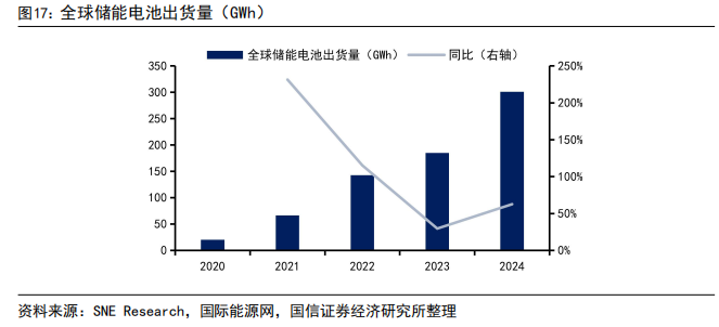 储能电芯出货高增,2026年或将迈向800GWh新台阶。2020-2024年全球储能电池出货量呈现爆发式增长态势,出货量从2020年的20 GWh提升至2024年的301 GWh,4年间规模扩张超15倍,年复合增速超100%。2024年全球动力电池及储能电池总出货量达1299 GWh,同比增长24%,其中储能电池贡献了核心增量,从2023年185 GWh升至2024年301 GWh,同比增62.7%。根据InfoLink全球储能供应链数据库数据显示,2025年前三季度全球储能电芯出货量已达410.45 GWh,同比大幅增长98.5%。其中第三季度表现尤为强劲,受益于海内外市场需求同步释放,电芯企业普遍实现满产满销,单季出货量达170.24 GWh,创下历史新高。需求端的快速放量已推动市场由此前的产能过剩转向阶段性紧平衡,部分厂商开始释放涨价信号。基于当前排产与订单情况,InfoLink预计2025年全年全球储能电芯出货量将超过560 GWh,并有望逼近600 GWh。展望2026年,全球储能需求仍将持续多点发力,而新增产能主要集中在下半年释放,整体供需或呈现上半年偏紧、下半年逐步宽松的格局。综合各厂商出货指引及区域项目落地进度,InfoLink初步预测2026年全球储能电芯出货量将接近800 GWh,行业仍将保持中高速成长态势。