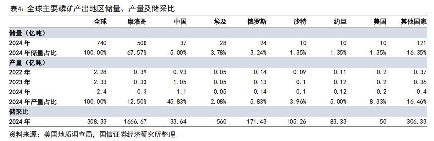 中国以全球5%储量支撑近半产量,资源保障压力突出,稀缺属性持续强化。中国磷矿石以全球约5%的储量贡献了全球45.8%的产量,储采比仅为33.6,远低于摩洛哥的1667,资源透支严重。据美国地质调查局数据,2024年全球磷矿储量740亿吨,其中摩洛哥占67.6%(500亿吨),但其因基础化工产业薄弱,产量仅占全球12.5%;而中国储量仅37亿吨,却年产超1.1亿吨,且整体品位仅17%,可采储量平均品位亦不足23%,显著低于全球30%的平均水平。在新能源需求大增与国内供给增长受限的双重作用下,磷矿石稀缺性不断强化,预计价格中枢将长期维持高位。