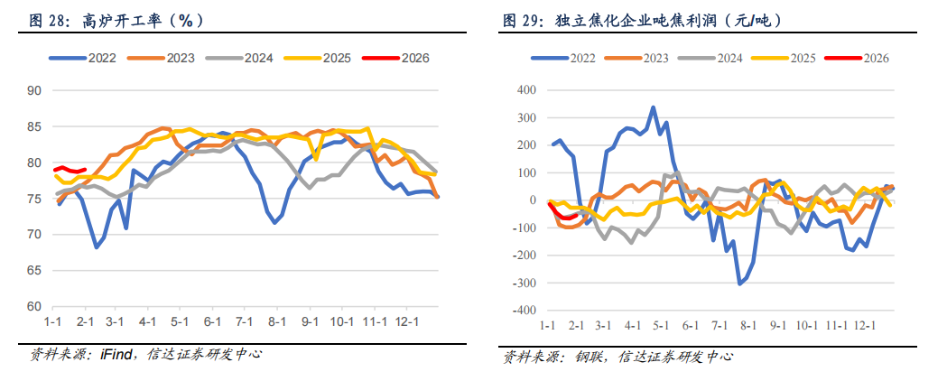 ⚫ 高炉开工率:截至1月30日,全国高炉开工率79.0%,周环比增加0.32百分点。