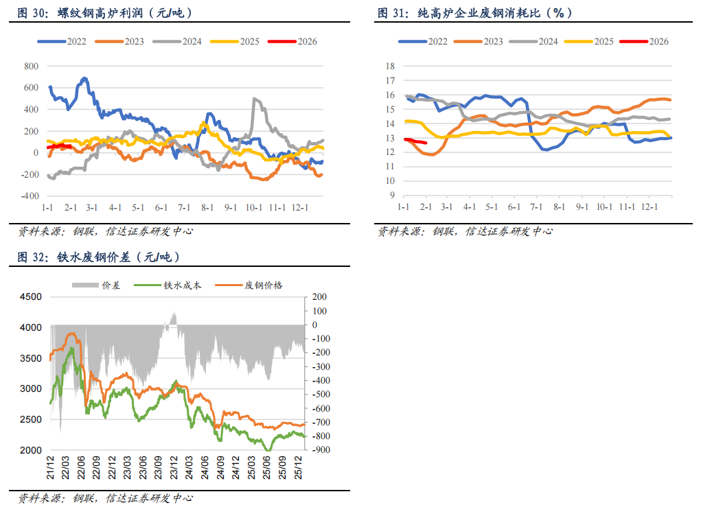 ⚫ 高炉废钢消耗比:截至1月30日,纯高炉企业废钢消耗比为12.65%,周环比下降0.1个百分点。