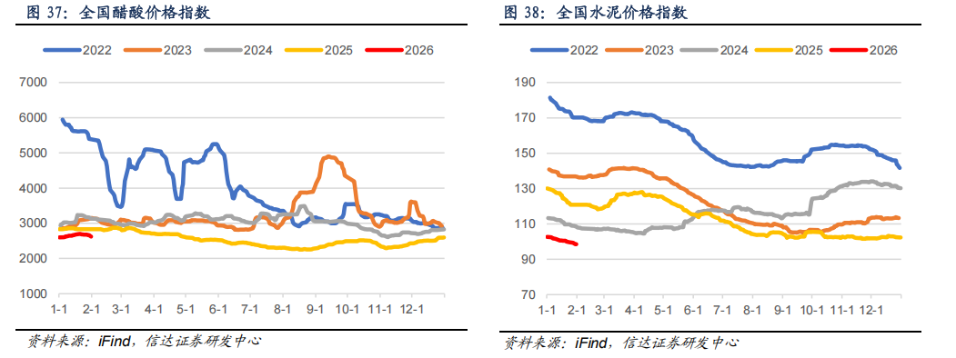 ⚫ 截至1月30日,全国醋酸价格指数较上周同期下跌57点至2624点。