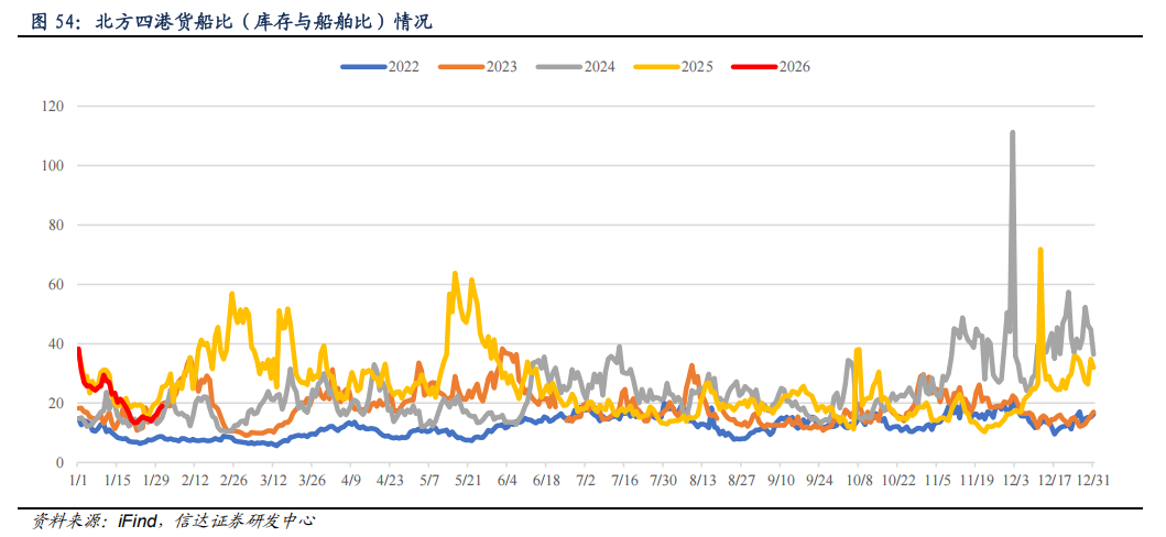 ⚫ 港口库存:截至1月30日,四港口合计焦炭库存较上周增加2.0万吨至198.1万吨,周环比增加1.03%。