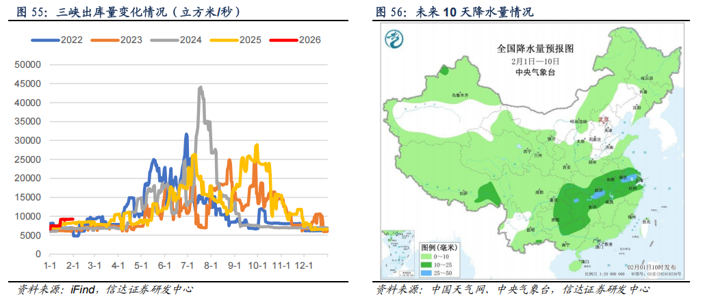 ⚫ 截至1月30日,三峡出库流量为9230立方米/秒,周环比增加0.44%。