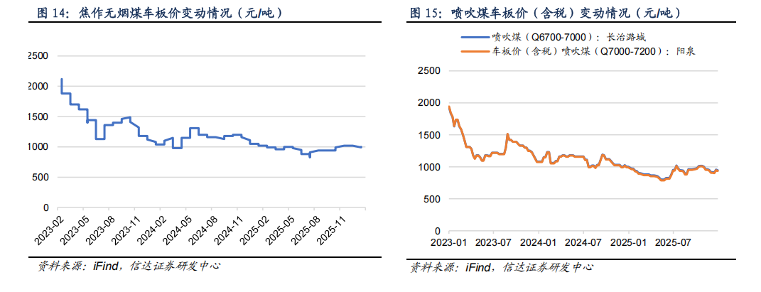 ⚫ 截至1月30日,焦作无烟煤车板价1000.0元/吨,周环比持平。