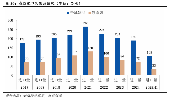 2.2 进口乳制品:以大包粉和婴配粉为主,持续下滑后于2025年有所增长