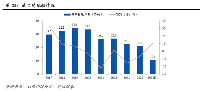 2.2.2 进口婴配粉:2019年以来持续下滑,2025年量价提升