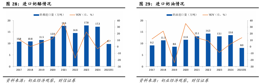 2.2.3 其他进口乳制品:奶酪和奶油进口趋势未减