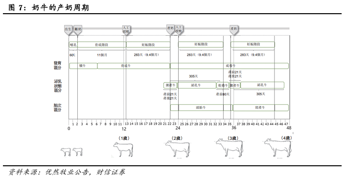 2.1.1 奶牛产奶周期:接近2年时间,显著长于生猪养殖周期