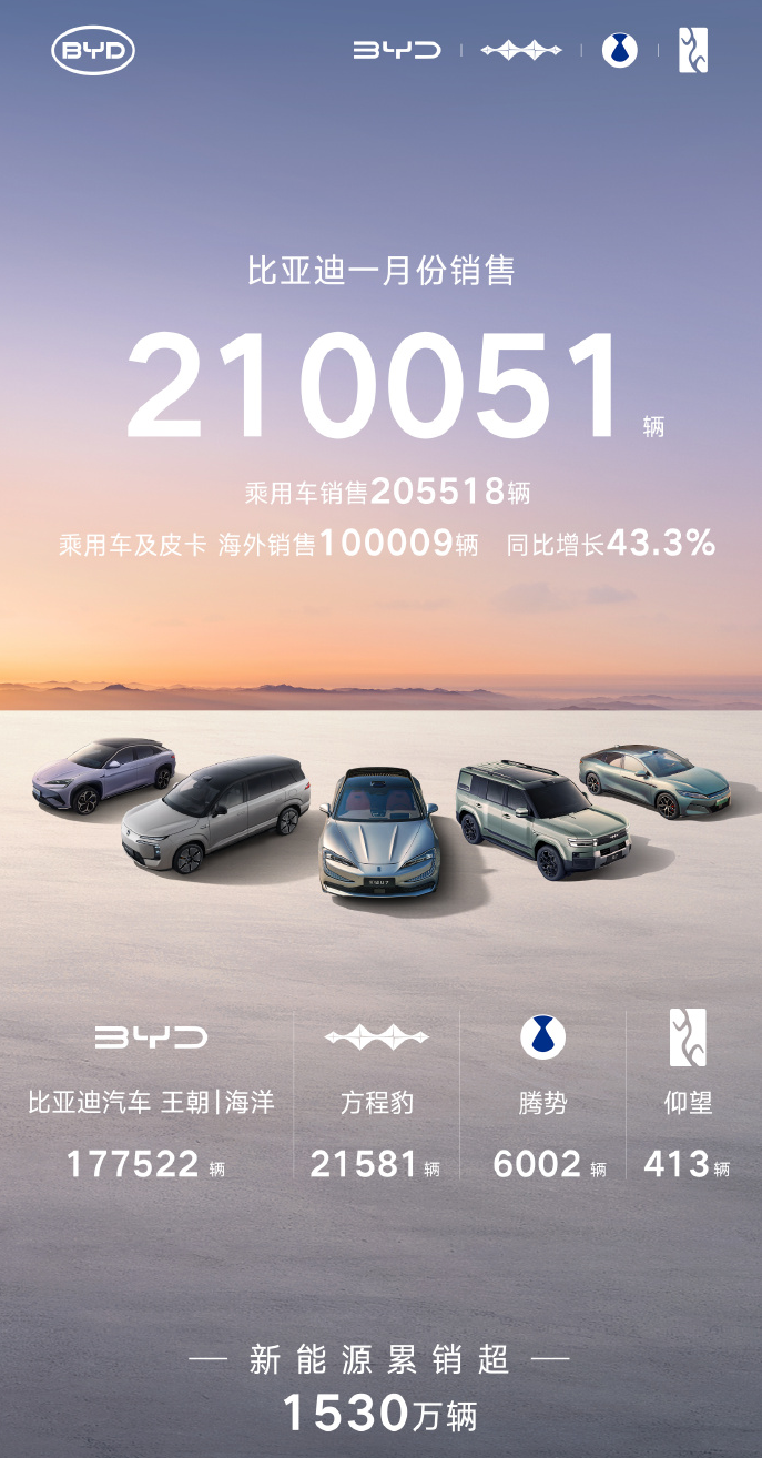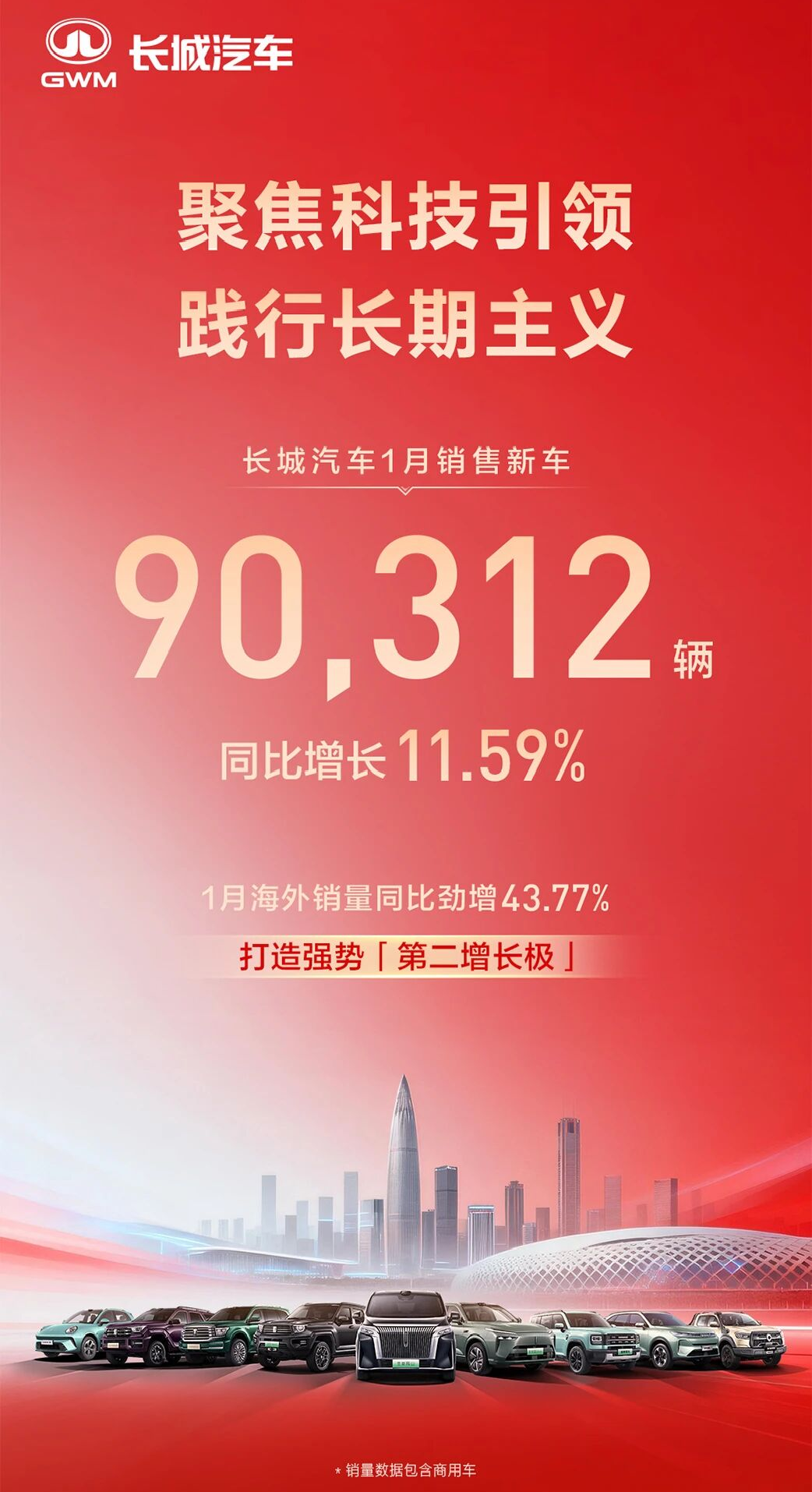 比亚迪、奇瑞、吉利、长城等车企1月销量