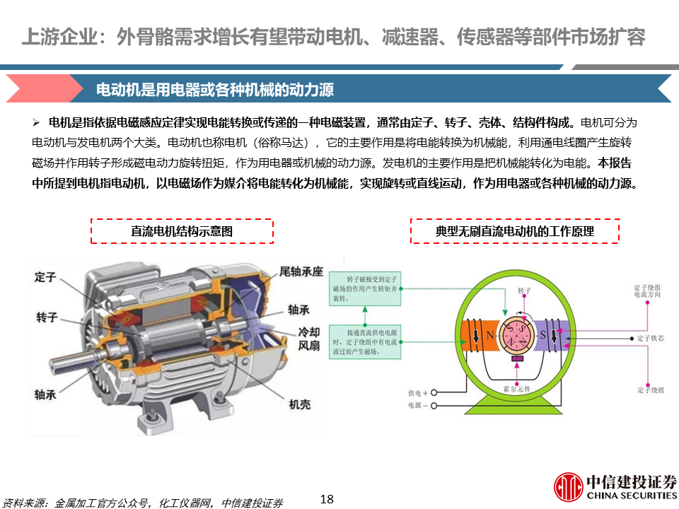 近年来政策支持力度逐步加大,在技术、支付和应用三方面核心驱动下,外骨骼机器人迈入商业化加速阶段。随着下游市场需求的扩张和产品的逐渐成熟,外骨骼机器人市场规模快速增长,C端市场有望放量。上游核心零部件环节,外骨骼机器人需求增长有望带动无框力矩电机和姿态传感器市场扩容;中下游应用环节,国内企业目前产品以医疗康复为主,正在逐步拓展消费类、工业类等领域产品,2025年以来多家企业相继发布消费级助力产品。行业的产品创新、性能改善、成本降低有望推动商业化加速落地,建议关注上游零部件企业,以及中下游企业业务布局及进展。