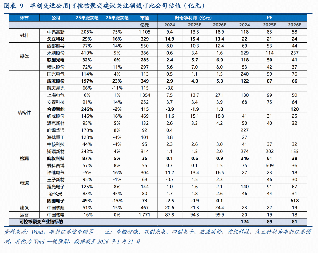 1、四川聚变产投正式运营,电磁驱动聚变大科学装置获发改委批复。1月26日,四川聚变新能产业投资发展有限公司正式运营,作为服务天府新区聚变科创城的核心主体,其承担了聚变科创城建设服务、科技成果转化合作、聚变产业生态培育、园区运营配套服务等功能。近期,电磁驱动聚变大科学装置已正式获得国家发展改革委可研批复,预计2026年开工建设。